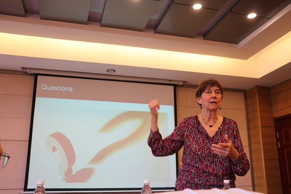 讲座开始,Carrie Regenstein 女士表示要做一个优秀的发表,需要合理安排整个发表流程的时间。要站在观众的角度考虑,他们关注什么,他们花时间来听你的演讲,你必须准备好你给他们的信息是有用的,简短的描述背景和方法,将重点放在结果部分。发表的内容应该突出关键点,图片和表格应当简洁明了。之后,Carrie Regenstein 女士说可以尝试在正式发表前和朋友练习,让她提出意见,并且试试由她提问,你来回答。如果演讲前感到紧张:伸展双臂活动身体,深呼吸。演讲开始记得微笑,和观众打招呼。事情总不像你想象中那样顺利。即使做了万全准备也难免会有突发状况。不要沮丧,提起信心,告诉自己下次会做的。