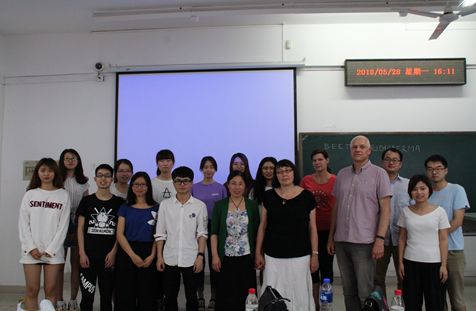 Barbora Branska做了主题为“丁醇的发酵生产:从过去到现在的问题”的演讲。在报告中,Barbora Branska分别从丁醇介绍、丁醇工业生产的历史、发酵的主要特点、利用木质纤维素生物质生产丁醇、流式细胞仪在丁醇生产者分析中的应用 - 溶剂性梭菌五个方面进行讲解。报告结束后,教授们还与参会师生针对留学相关事宜及报告中的几个问题进行了讨论。