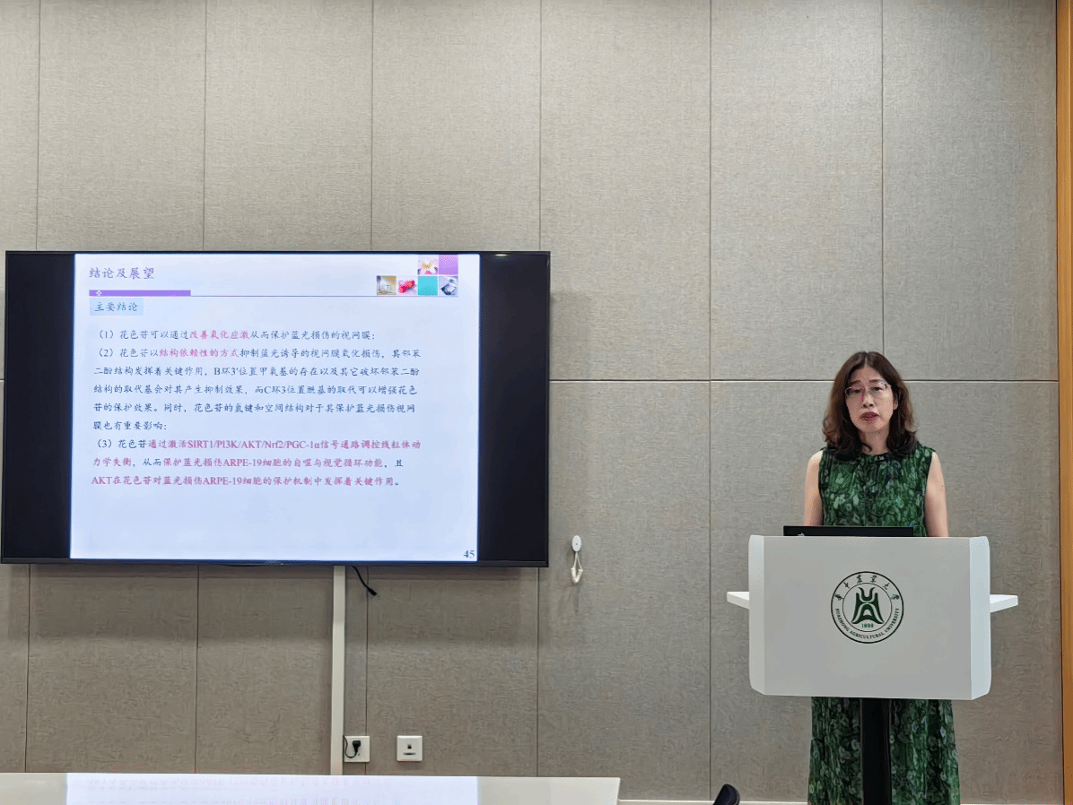 公司教师李春美教授分享了花青素在改善蓝光所致眼损伤及其分子机制方面的最新研究成果,该研究为开发 “护眼功能食品” 提供了科学依据,也与董诺教授团队关注的“眼表氧化损伤修复”形成跨领域呼应。