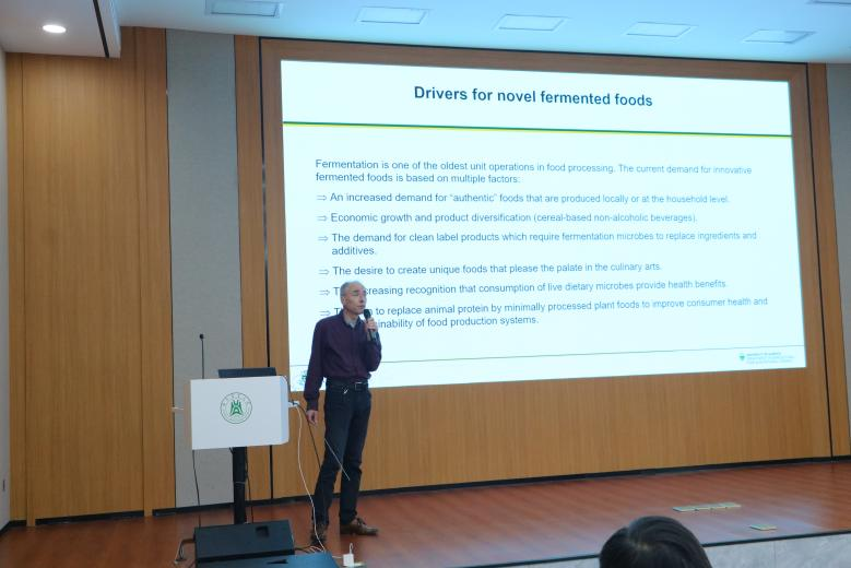 6月5日下午,Michael Ganzle教授在伟德官网、果蔬加工与品质调控省重点实验室的邀请下于伟德官网103会议室进行关于食品创新发酵的学术报告。Michael Ganzle,加拿大阿尔伯塔大学教授,加拿大食品微生物与益生菌研究主席(Tier1),加拿大皇家科公司院士,国际权威的食品微生物和益生菌专家。Michael Ganzle教授长期致力于乳酸菌的功能特性与新型非热食品保藏方法研究,以开发新型食品发酵剂、保护剂、益生菌等。