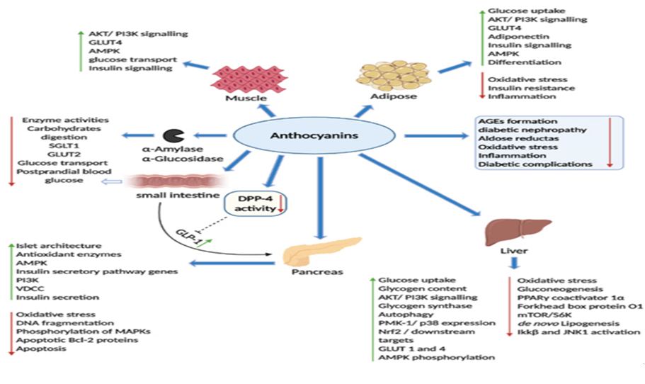 图1花色苷抗高血糖活性的靶点及其机制