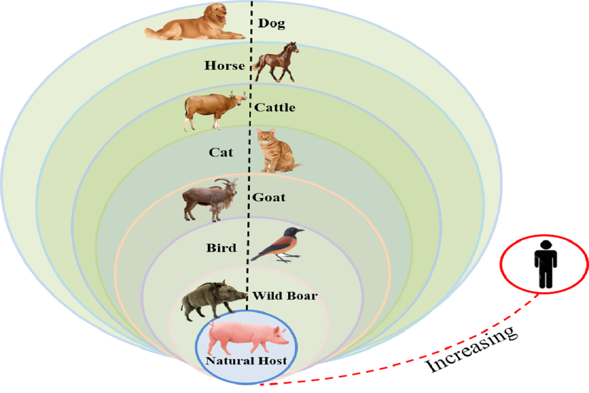 猪链球菌是一种致病性的革兰氏阳性菌,其引起的猪链球菌病是一种新发的人畜共患病,可通过猪传人途径传播,导致人类感染并出现脑膜炎、败血症,听力减弱或者丧失,以及罕见的中毒性休克等多种临床症状。越来越多的研究表明猪链球菌的感染宿主的范围在不断的扩大,涵盖野生动物类、家禽类、牲畜类以及宠物类,感染宿主范围的拓展和人群感染率的不断增加表明这种新型病原的环境适应能力和致病性都在不断的进化,提示我们要重视该新发病原,并阻断其在食品生产链中的传播。