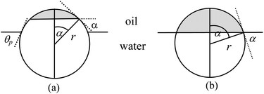 图1. 在油/水界面上具有不同接触的颗粒的可能位置