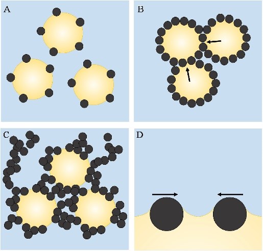 图2. 油/水乳剂表面和/或连续相中颗粒的示意图
