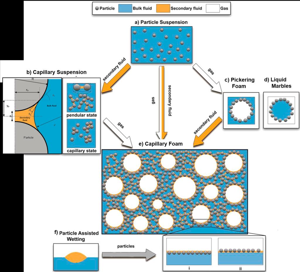 研究背景:在20世纪初,Pickering和Ramsden等人发现固体颗粒可以作为乳液稳定剂使用。后来,科学家发现颗粒也可以用来稳定泡沫。与使用表面活性剂构建的乳液/泡沫不同,颗粒稳定具有明显的优势,如更好的界面稳定性、无毒性和对环境影响不敏感。因此,颗粒稳定的泡沫和乳液系统有可能在食品、药物输送和化妆品领域获得更多的应用。