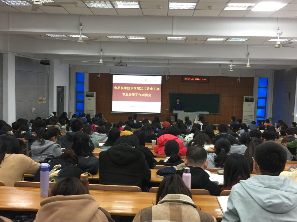 11月21日中午,伟德官网在三教A105教室召开2017级食工类专业分流工作动员会,公司副经理张柱红、副书记向异之、食品科学与工程专业负责人熊善柏教授、食品质量与安全专业负责人郭爱玲教授及公司全体2017级本科生参会,会议由2017级辅导员胡小娱主持。