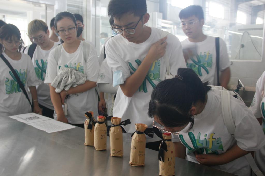 耕土耕心,酿酒酿人。葡萄酒是如何制作的,背后的酒文化又是如何?在小型果酒发酵装置前,李二虎老师向同学们讲解着葡萄酒的发酵制作技术,涉及原料破碎、发酵、冷藏、过滤、罐装等一系列工艺,现场同学看、闻、尝后纷纷与老师交流探讨,了解与之相关的葡萄酒文化。