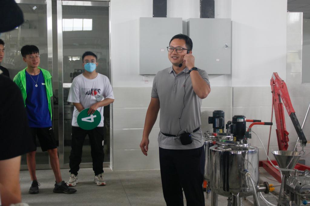 本次的“耕读第一课”活动,公司在食品工程训练中心为新生们提供现场讲解,以食文化为内核带领新生们了解现代化食品工业的真实面貌。活动过程中各专业团队的老师积极参与到育人工作中,彭丽桃、李洁、胡筱波、尤娟、贾才华、许燕和安玥琦等老师第一时间报名担任课程讲解志愿者,全程为参观员工进行讲解引导。手术痊愈不久的王鲁峰老师获知公司教育学联动群的活动消息后,依旧来到现场坚持在场内带队进行介绍讲解,活动期间老师们还在不断探讨进一步优化流程的金点子。