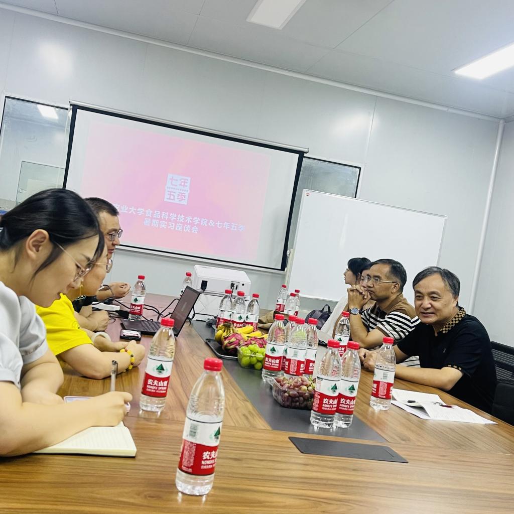8月16日,公司党委书记杨铁贵一行赴武汉百品味来科技有限公司(七年五季)看望公司本科毕业实习员工。本科生院实践教学管理处处长刘震、公司副经理刘友明,指导老师袁方、胡筱波、吕优优,以及武汉百品味来科技有限公司(七年五季)联合创始人陈俊、研发部负责人王莹莹、技术部负责人陈媚依、生产部负责人姚博共同参加了座谈。