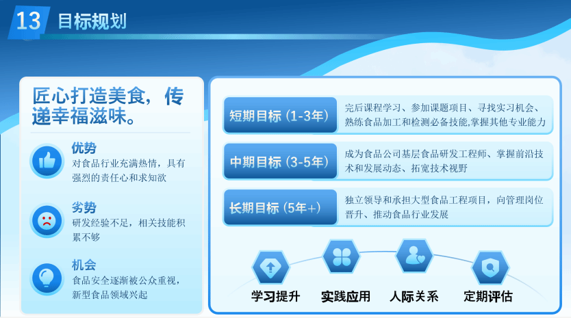 王泽文虽然刚刚大一,但她对未来有着清晰的规划和明确的定位。她立志成为一名优秀的食品安全管理员,为保障人们的饮食安全贡献自己的力量。为此,她已经制定了详尽的发展规划,并正在为之不懈努力。