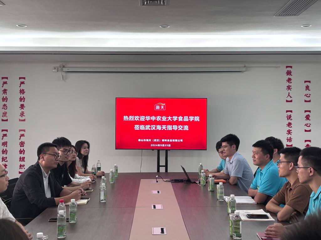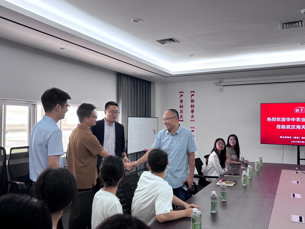 在现场见面会中,公司领导与海天企业武汉园区总负责人杨文芳总经理以及工艺所所长等一行人进行友好深入交流。期间,海天企业相关负责人从企业历程、武汉园区独特优势以及员工卓越成就到企业文化进行详细介绍,展现了海天味业作为行业领军者的风采与担当。随后,公司党委副书记吕瑞凯就公司团队建设、公司发展现状、专业特色等多个纬度展开讲解。其中,他重点介绍了公司25届毕业生情况和员工情况等,且当提及“勤读力耕,立己达人”的校训时,吕书记强调,这不仅与海天企业的精神内核不谋而合,同时也为双方未来的深度合作奠定了坚实的文化基础。