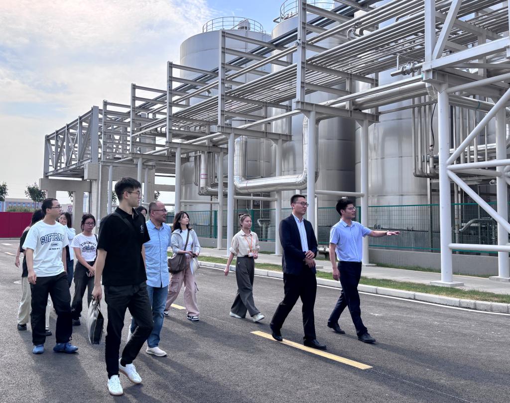 ▲ 海天企业相关负责人带队进行现场参观(记者团 杨依倩 摄)