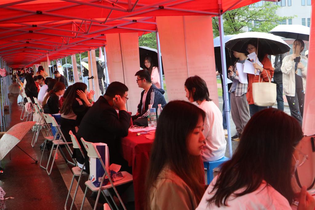 本次招聘会设打卡区、简历指导区、招聘区等区域,招聘会现场人头攒动,求职者络绎不绝。来自不同公司和专业的毕业生手持简历在招聘展位前穿梭,查看招聘海报信息并与用人单位积极交流工作内容、薪资待遇、发展空间等问题,企业工作人员对招聘岗位类型和待遇保障等向毕业生进行详细答疑。