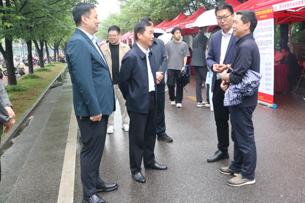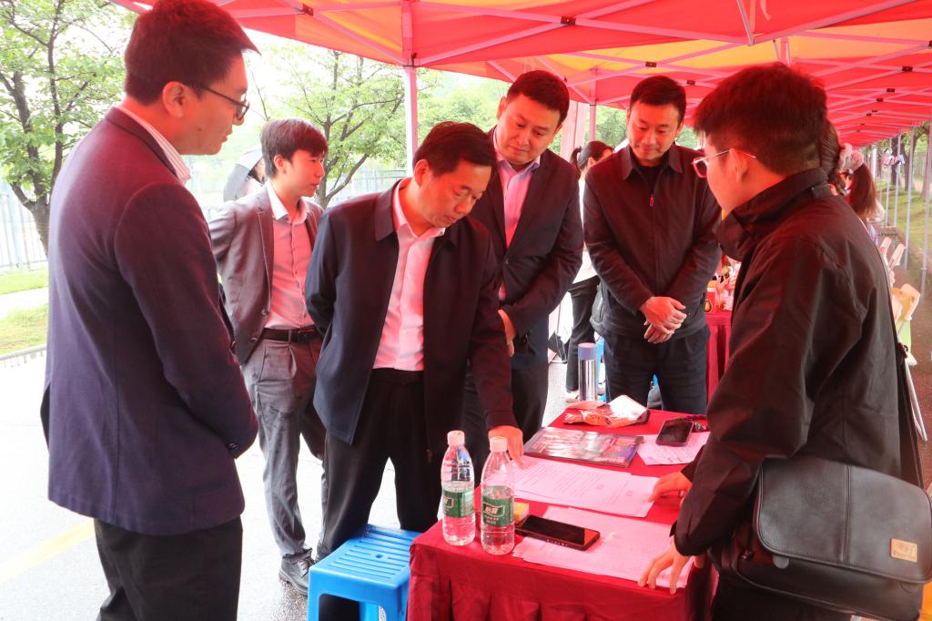 东西湖区人社局党组书记、局长姚树明及副局长叶志文等来到招聘会现场,伟德官网杨书记和吕书记等陪同,了解企业用人需求、招聘岗位的设置数量、毕业生的求职意愿和签约情况,鼓励毕业生理性规划职业生涯,积极了解求职企业投递简历。