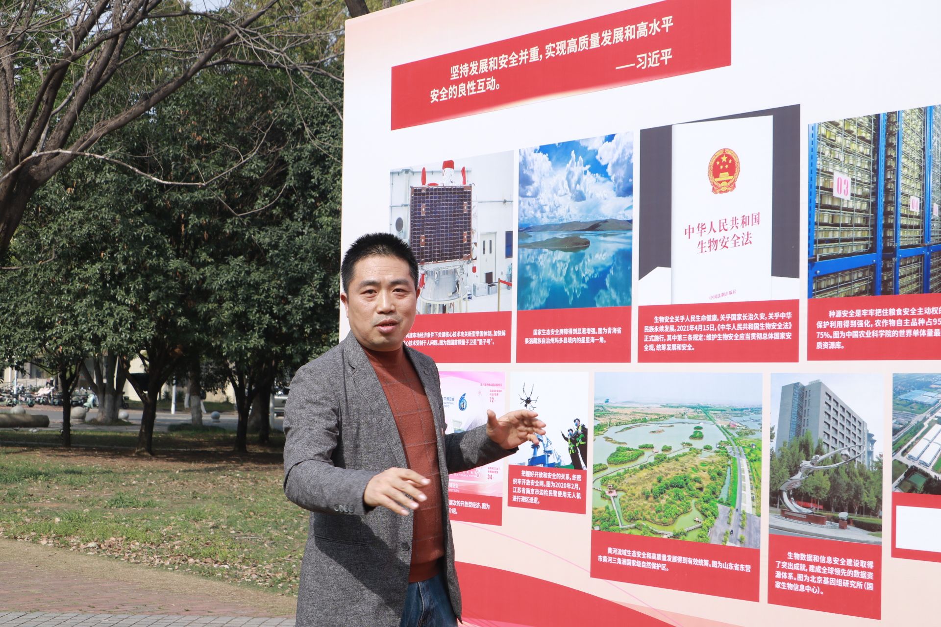 在主题展览区,建安部部长张越以“总体国家安全观的科学内涵与实践路径”为主线开展现场教学。他结合展板内容,从“历史沿革”“时代命题”“党的领导”三大维度系统阐释了总体国家安全观的理论体系,强调“国家安全是安邦定国的重要基石,必须树立底线思维、系统思维”。针对高校特点,他重点剖析了科技安全、生物安全等非传统安全领域风险,指出“实验室数据管理、转基因技术研究等环节都是高校安全链条的关键节点,需要建立全流程管控机制”。