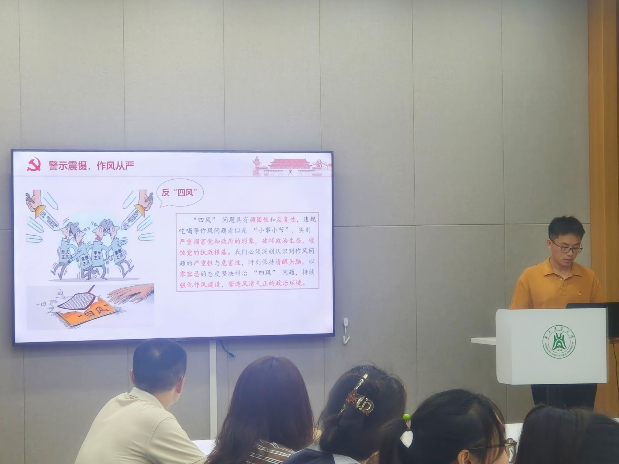 苑祥昊同志强调弘扬三大精神,严守八项规定的重要性(孙雅诗 摄)