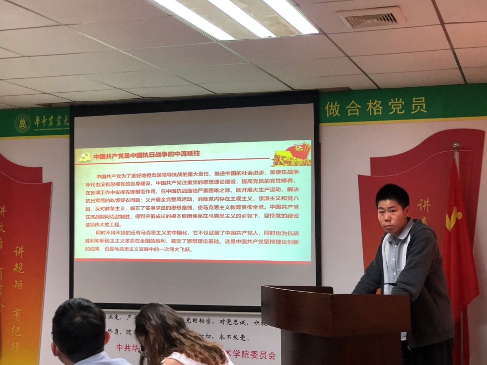 各小组学习分享结束后,由优秀党员代表王文乾为针对此次研讨活动分享入党经验和感悟,他说道这次研讨会也让他重温我党的发展历史,从大革命到土地革命,从抗日战争到解放战争,从新中国成立到社会主义探索,大家要端正入党动机,把前人未尽的事业一代代传递下去,他认为积极分子和正式党员是没有思想鸿沟区别的,党员是需要终身学习的,他在入党之后一直坚持晚上默写入党誓词来强化自己的使命意识,也希望各位积极分子能够不断学习进步,为我党不断注入新鲜血液。