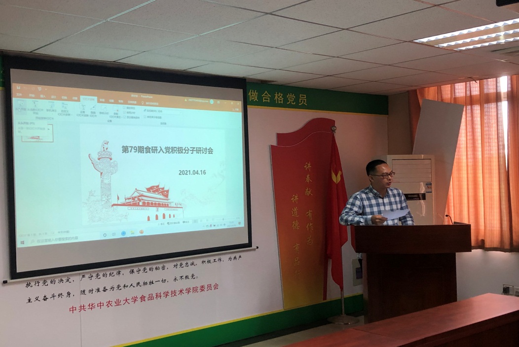 内容提要:2021年4月16日中午十二点,伟德官网第79期入党积极分子党史学习研讨会在食科楼院楼445会议室顺利举行,优秀党员代表王文乾、全体79期入党积极分子以及党建办公室主要负责人员参加此会议。本次研讨会旨在使各入党积极分子对中国共产党的建立、成长以及成熟的光辉历程有更清晰的认识,加深积极分子对党新时期的路线方针的了解。
