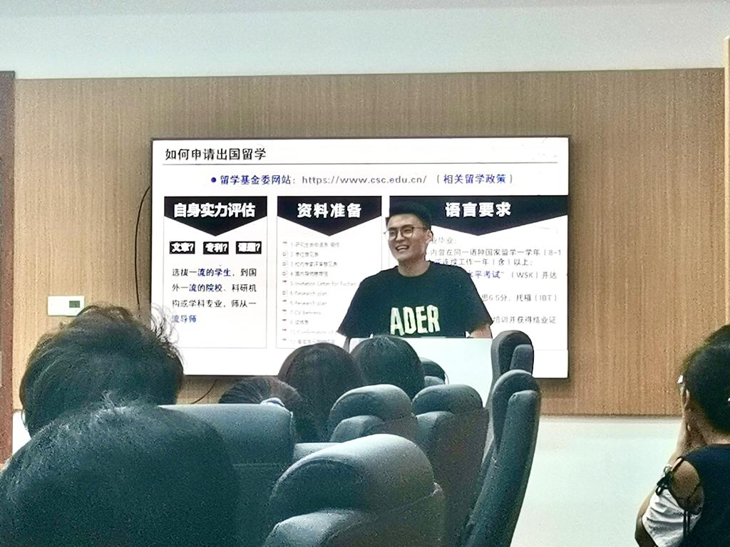 博士生杨超师兄就自己的副主席员工工作以及研究生生活与现场的各位同学们进行了亲切的交流。杨超师兄结合自身的学习经历,告诉大家要潜心科研,在科研的过程中要不断的寻找乐趣,找到学习和娱乐的平衡点,毫无保留的分享了精读和泛读的高效阅读文献方法。祝福大家能在迷茫中前进,在迷茫中坚定,做一个自带掌声的人!“兴趣是最好的老师,一定要培养自己的科研兴趣,才能在科研的道路上越走越顺利。”这是新生在谈及确定读博意向时他给出的最坚定的答案。