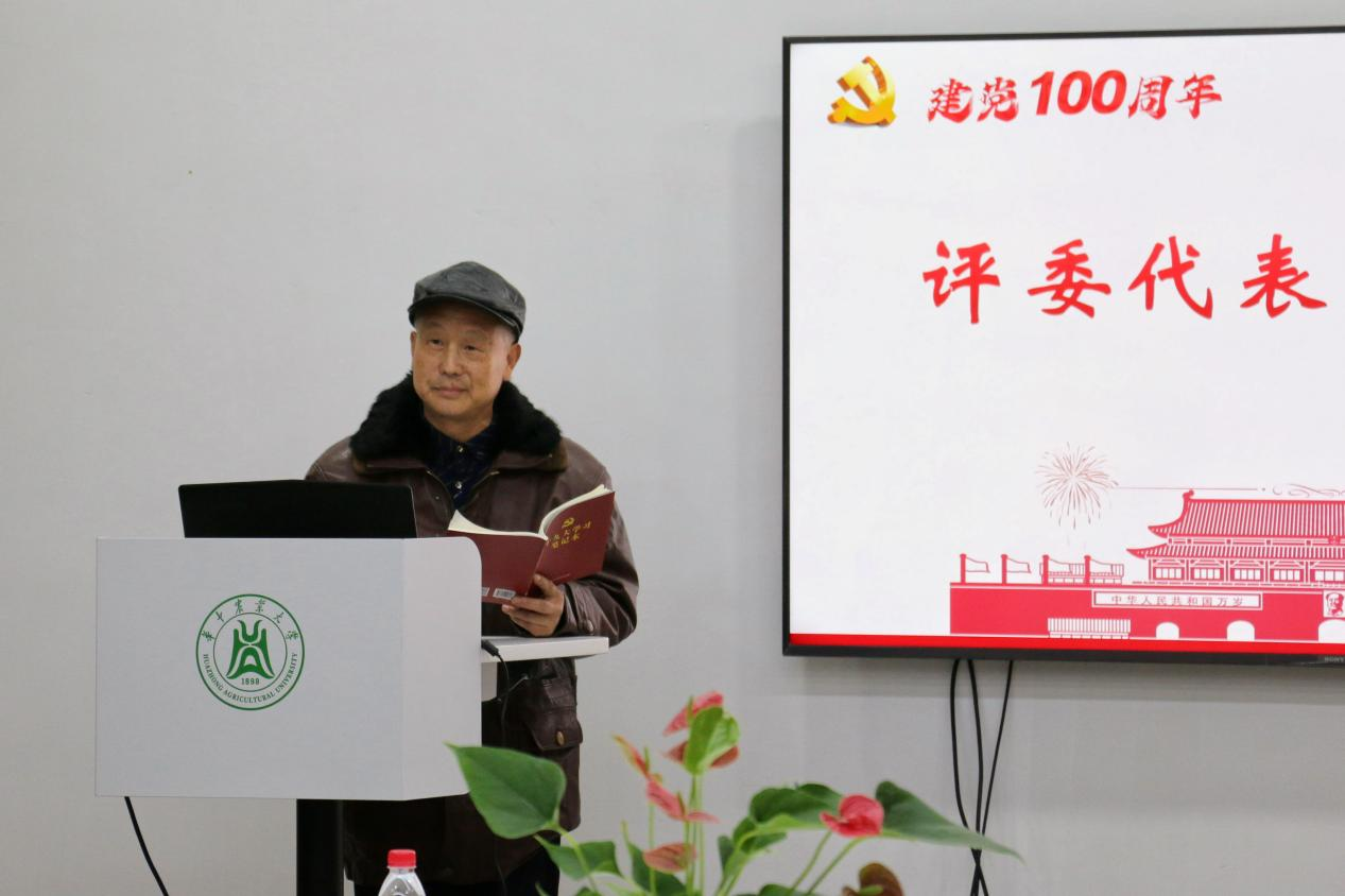 食科院老员工党总支组织员异国顺老师作为评委代表对此次比赛进行总结点评。他指出,本次比赛24位参赛选手准备充分,看到了青年党员的担当和负责,也看到了中国从古至今的伟大发展。同时,在内容中所展现的六种精神--软的青稞精神、“两不怕”精神、红船精神、抗疫精神、123年华农精神和食科精神,让老师久久不能忘怀,十分感动。最后,异国顺老师提出对所有青年党员的深切期盼:弘扬代代相传的食科人精神——担当、创新和实干,我们每个人都是擎天柱,只有撑起这片天,我们才会更加的幸福!我们不只要同迎食满华夏,更要食满天下!