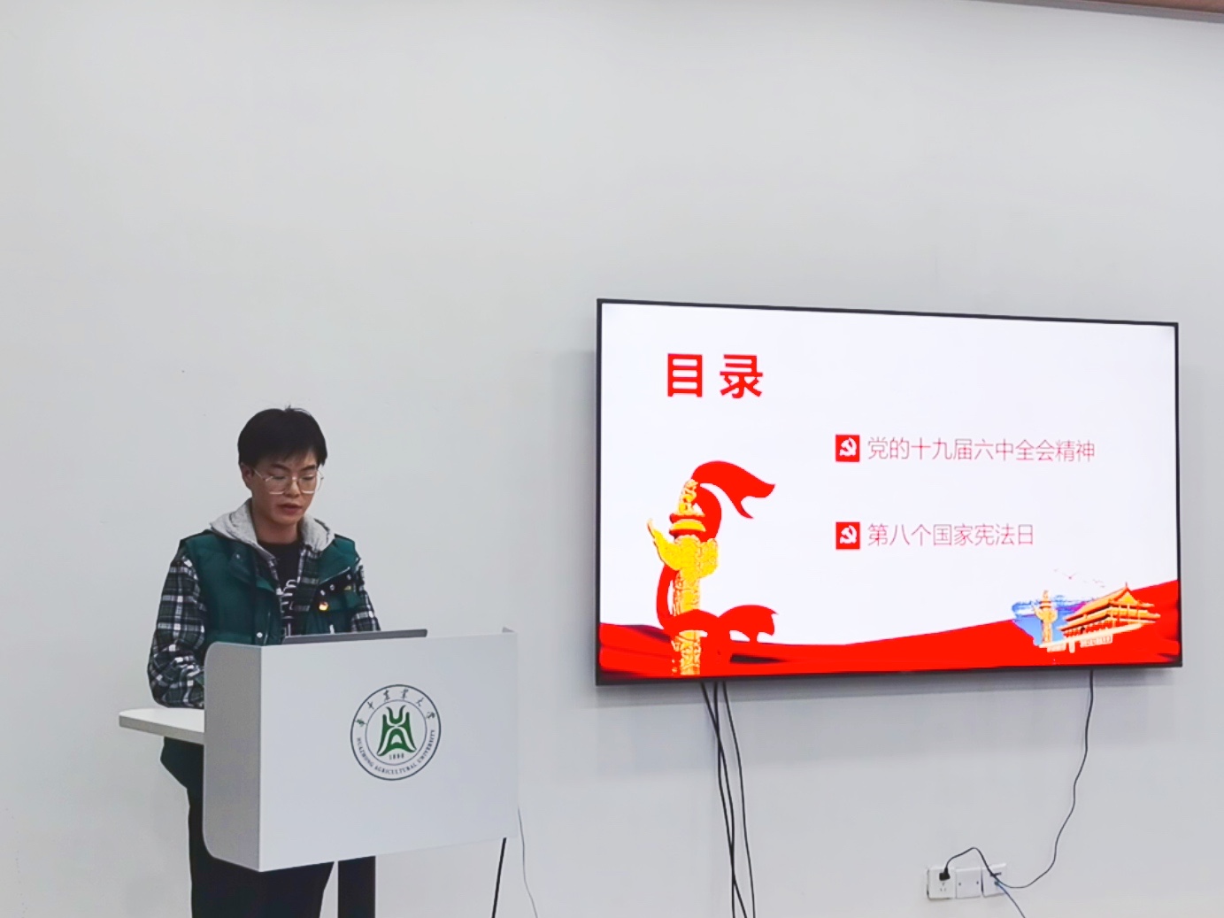 2021年12月15日,伟德官网研究生第七党支部于工科楼122会议室召开题为“弘扬宪法精神,深化理论研究”的主题党日,会议由支部书记丁一峰主持,支部党员22人到场参加。