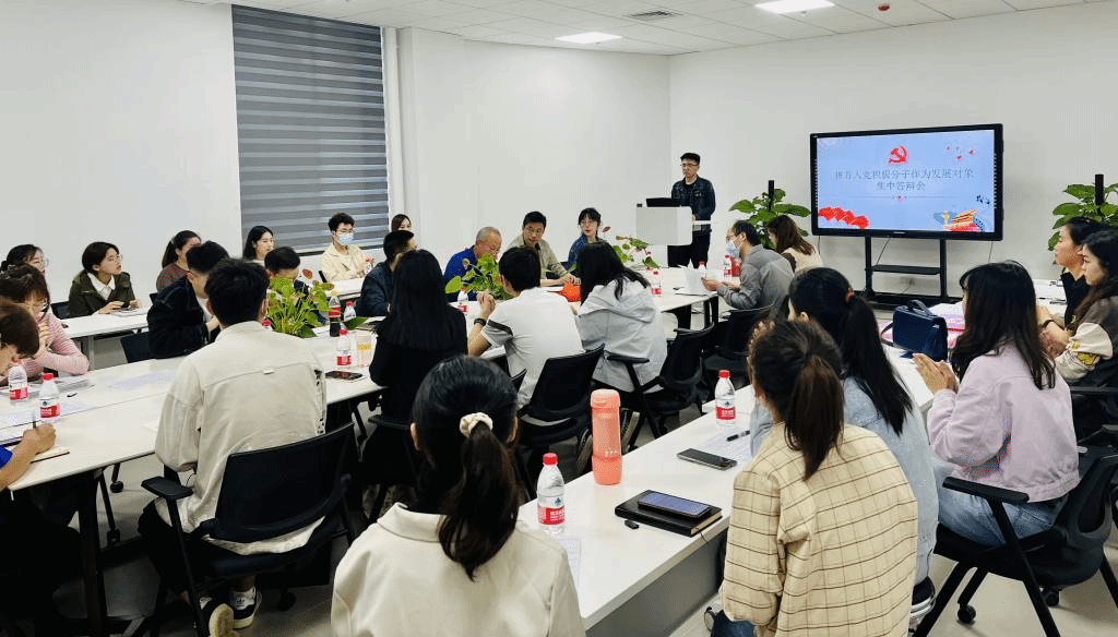 会议最后,向书记向同学们介绍今年公司研究生党建工作的三点思考:一是入党积极分子的培养和党员发展都很重要,要做到党员的培养与发展是相互融合;二是端正入党动机是争取入党的首要问题,在实践中不断提高思想政治修养;三是理论学习深度结合当前时事政治,例如对于疫情防控的具体政策要坚持好一名研究生党员的立场。同时对员工们的交流汇报提出建议,也鼓励同学们站在公司党建的角度,为公司更好开展党建工作提供建议。