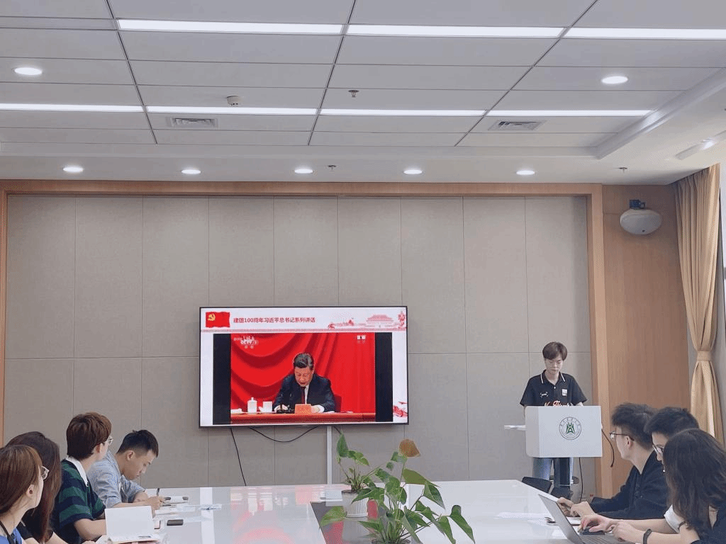 首先,支部博士党员刘昊天领学《建团100周年习总书记系列讲话》,以100年来共青团坚定不移听党话、跟党走的探索历程为主线,揭示新时代青年工作的经验特点,广大青年应带头立足岗位、苦练本领;带头迎难而上、攻坚克难;带头站稳人民立场、脚踏实地。在刻苦学习,锐意创新中,把光和热洒满祖国大地。