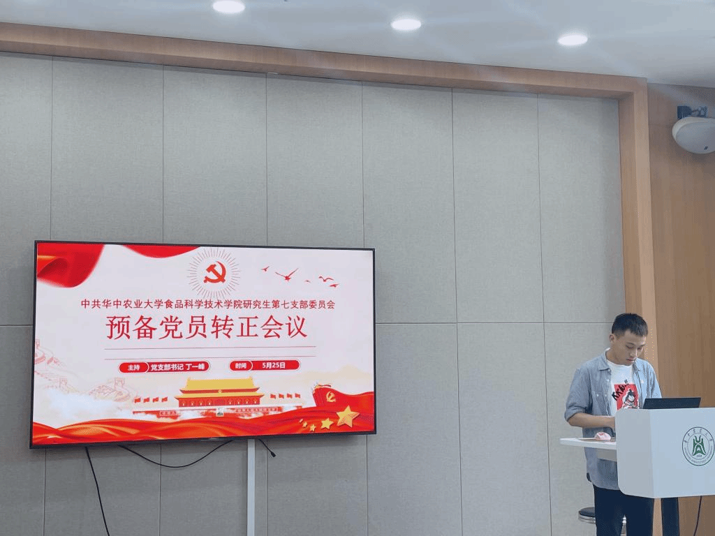 随后,支部书记丁一峰主持预备党员转正会议。预备党员梁一豪就预备期间的学习实践情况进行汇报,与会党员发表意见,同意其按期转为正式党员。
