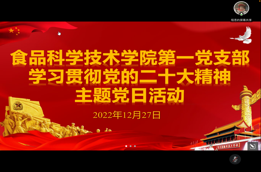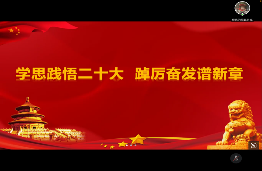 为深入学习党的二十大精神,增强广大党员的党性观念,提高党员的党性修养,加强新党员的教育和管理,把党的各项规章制度落实到行动上、体现在工作生活中,以实际行动为实现中华民族的伟大复兴贡献自己的力量。公司研究生第一党支部于12月27日晚在线上组织开展“学习宣传贯彻党的二十大精神”为主题的党日活动。
