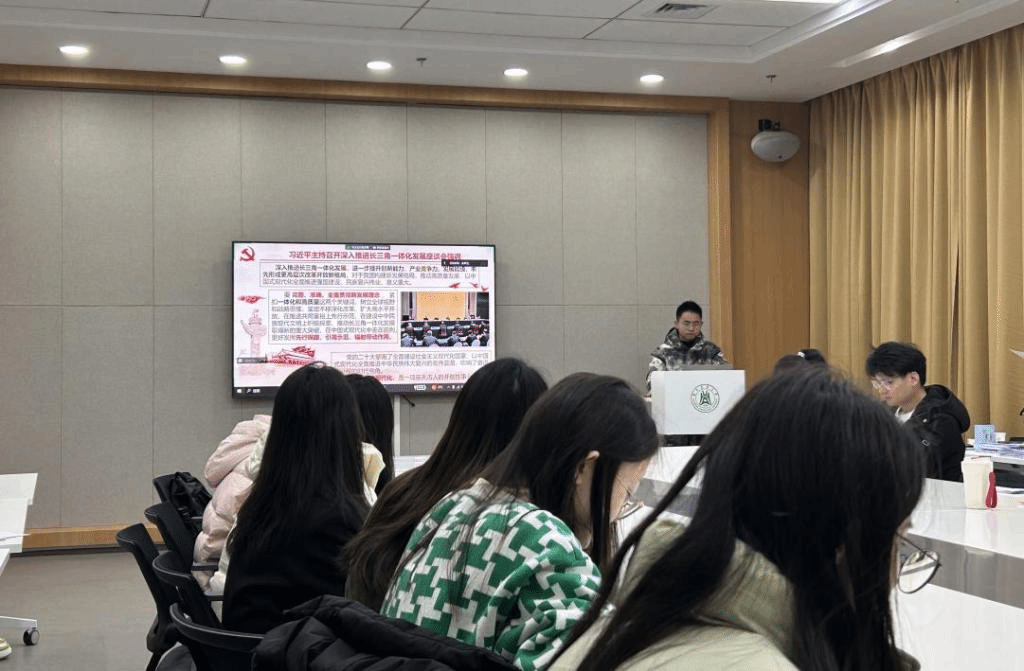 第三党小组胡鹏带领大家深入学习习近平总书记在深入推进长三角一体化发展座谈会上重要讲话