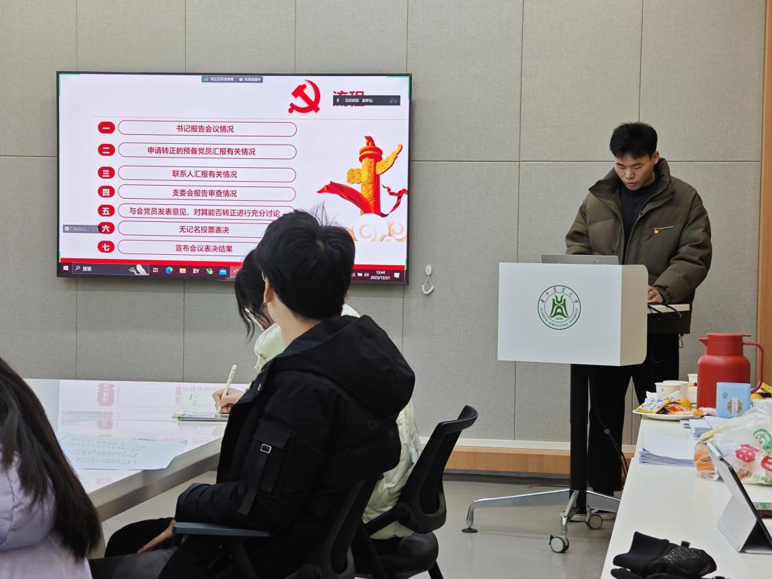 2023年12月21日中午12:20,伟德官网研究生第七党支部于工科楼122会议室开展十二月主题党日活动暨预备党员转正会议,会议由苑祥昊主持。