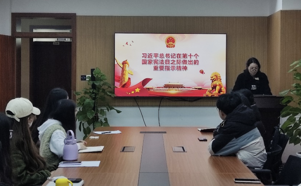 宪法是治国安邦的总章程。刘超萍带领大家学习在第十个国家宪法日之际习总书记所作出的重要指示,并重点领悟其中的四个“要”:“要坚定维护宪法权威和尊严”“要坚定政治制度自信”“要贯彻新时代中国特色社会主义法治思想”以及“要加强宪法理论研究和宣传教育”。“作为青年一代,我们要做宪法精神坚定的捍卫者和自觉的遵守者,努力弘扬宪法精神。”秦平同志在学习后有感而发,“团结一心、凝心聚力,让法治力量永葆鲜活的生命力,让宪法精神的旗帜永远高高飘扬。”