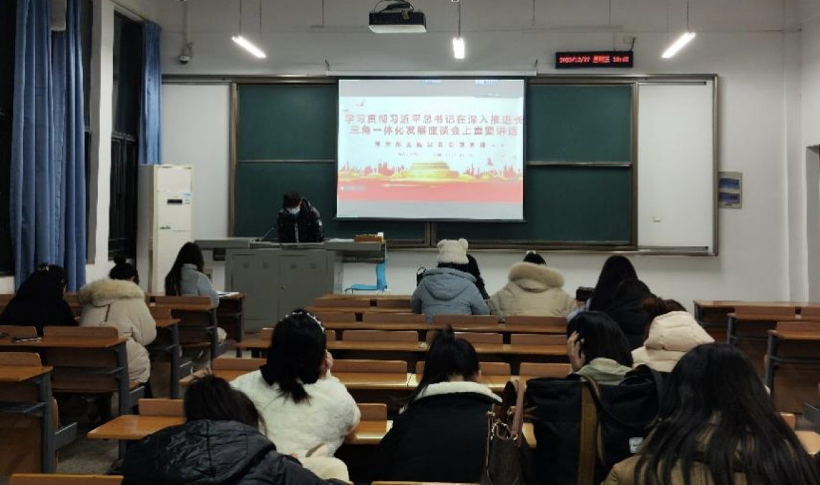 随后,唐旗带领大家学习和理解习近平总书记在深入推进长三角一体化发展座谈会上的重要讲话。他针对讲话中所提及的具体实践部分,从党和国家事业发展全局出发,对深入推进长三角一体化发展的重要部署内容作出详细讲解。