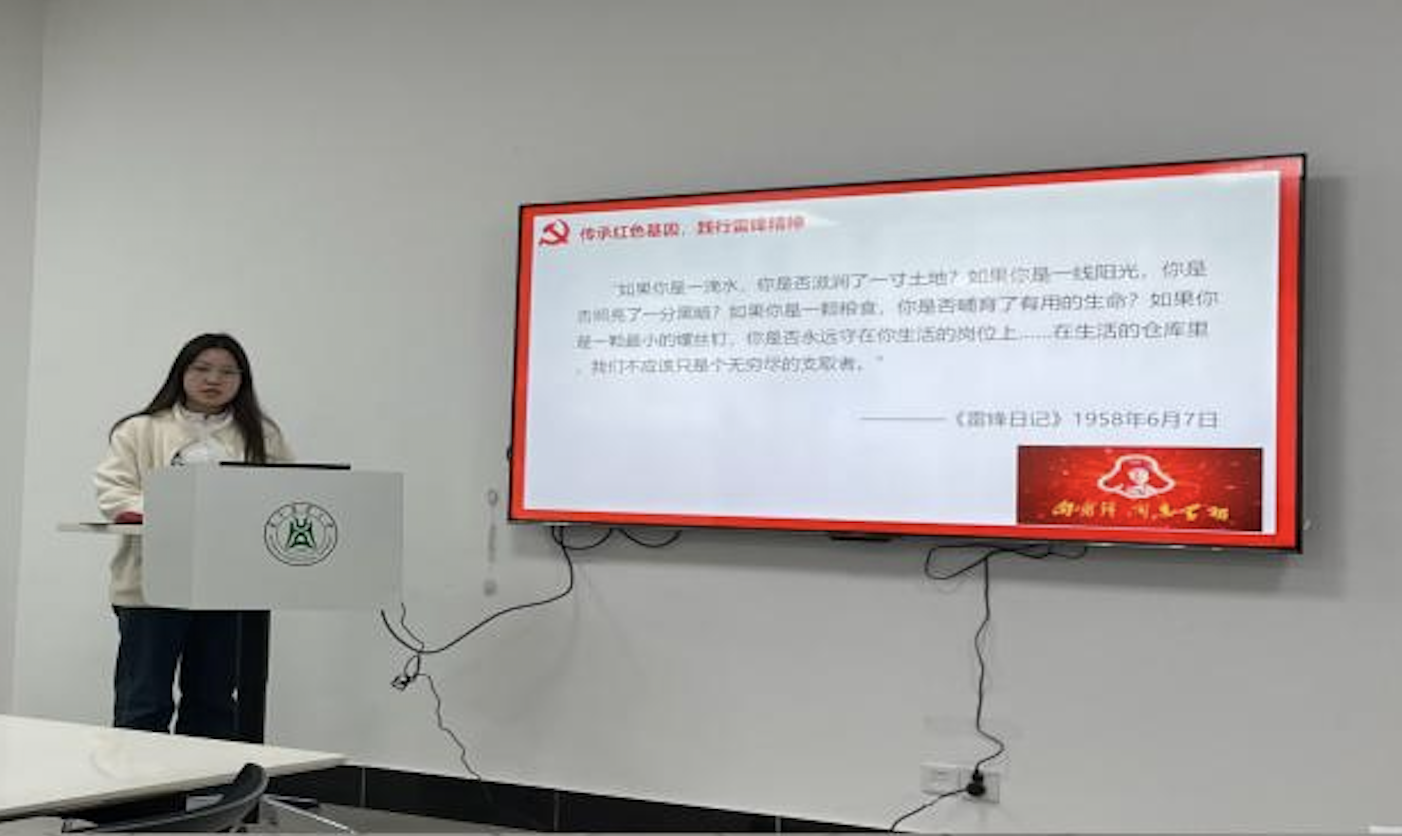 第二党小组与第四党小组则以“传承红色基因,学习雷锋精神”为主题,讲述雷锋同志的经典事迹,同支部成员传递蕴含“坚定信念、人民至上、锐意进取”的红色基因的雷锋精神。“雷锋精神是我党精神谱系的重要组成部分。”宫晴同志在听完之后说,“今后,我也会更为主动承担社会责任,多做扶贫济困、扶弱助残的实事、好事,以实际行动书写新时代的雷锋故事,为实现中国梦发光发热。”