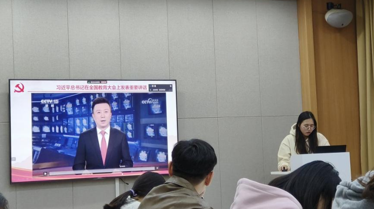 随后程婕同志带领大家观看习近平总书记在全国教育大会上的重要讲话,习近平总书记强调要紧紧围绕立德树人根本任务,朝着建成教育强国战略目标扎实迈进,要坚持不懈用新时代中国特色社会主义思想铸魂育人,实施新时代立德树人工程。