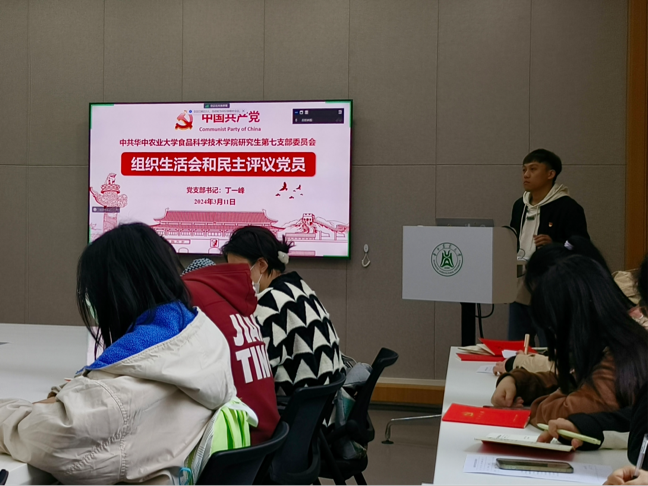为了适应新形势下党建工作的需要,2024年3月11日,伟德官网研究生第七党支部在工科楼122会议室召开了“立足红色沃土,涵养食研文化”主题组织生活会暨民主评议会。会议由党支部书记丁一峰同志主持,全体党员参加会议。