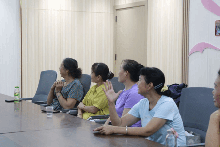 活动伊始,课堂氛围轻松愉悦。“大家今天早餐吃的什么呀?”讲师刘子毓以亲切的家常询问开场,迅速拉近了与居民的距离。社区居民贺春华阿姨积极回应:“今天早上不太饿,没有吃早饭。”“我吃了两块面包!”一位小朋友抢答道。刘子毓的提问抛砖引玉,将大家对健康早餐的疑惑聚焦到下一环节的科普视频中,鼓励大家带着思考观看视频,激发其主动学习的动力。