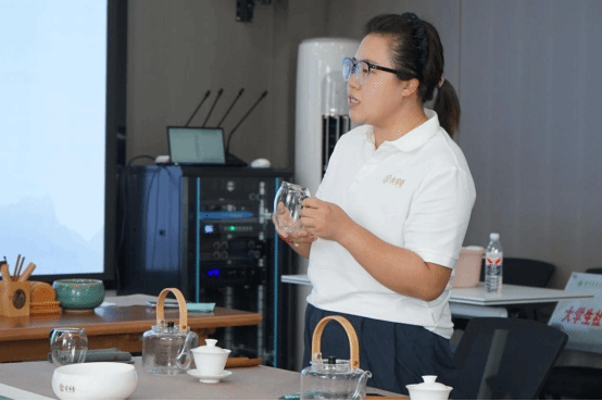 邓润娥为团队讲解茶文化 周子琳摄