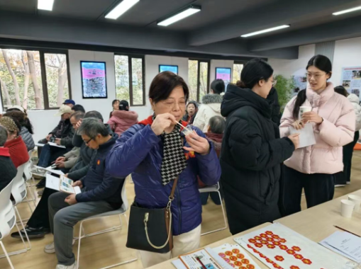 此外,志愿者们还在科普课堂上为老人们开展了咀嚼与吞咽障碍问卷调查与检测服务,对老人们的咀嚼与吞咽状况进行评级。课后,一位奶奶拉着志愿者的手说道:“我平时在喝水、喝粥的时候就总咳嗽,平时根本没有留意这个情况,你们今天讲完我就懂了,后面我可要多多注意饮食了!”这场跨越社区的科普课堂,让科学饮食知识真正“落地生根”。