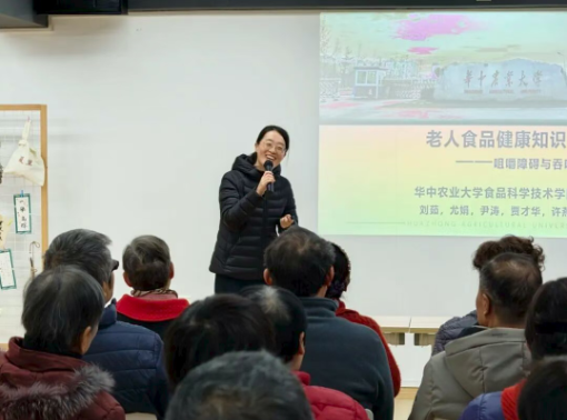 “您吃饭时会不会容易呛着?”“吃硬物时能不能咬得动?”12月4日至5日,食品科学与工程系副教授尹涛、贾才华、许燕三位专业教师将课堂搬进了金鹤园社区、华农西社区与保利心语西区社区,开启了面向百余位老年人的饮食健康课。
