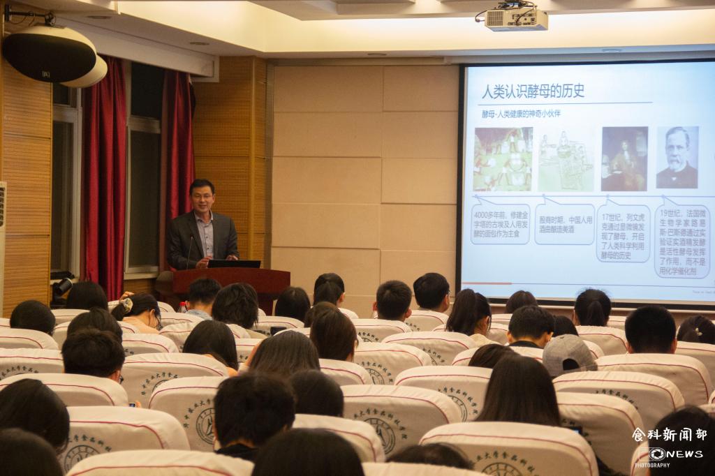张欣然发言完毕后,安琪酵母股份有限公司副总经理、研究院经理覃先武发表讲话,他从“认识酵母、走进安琪、创新竞赛”三个方面向大家详细介绍了安琪公司及其研发产品。