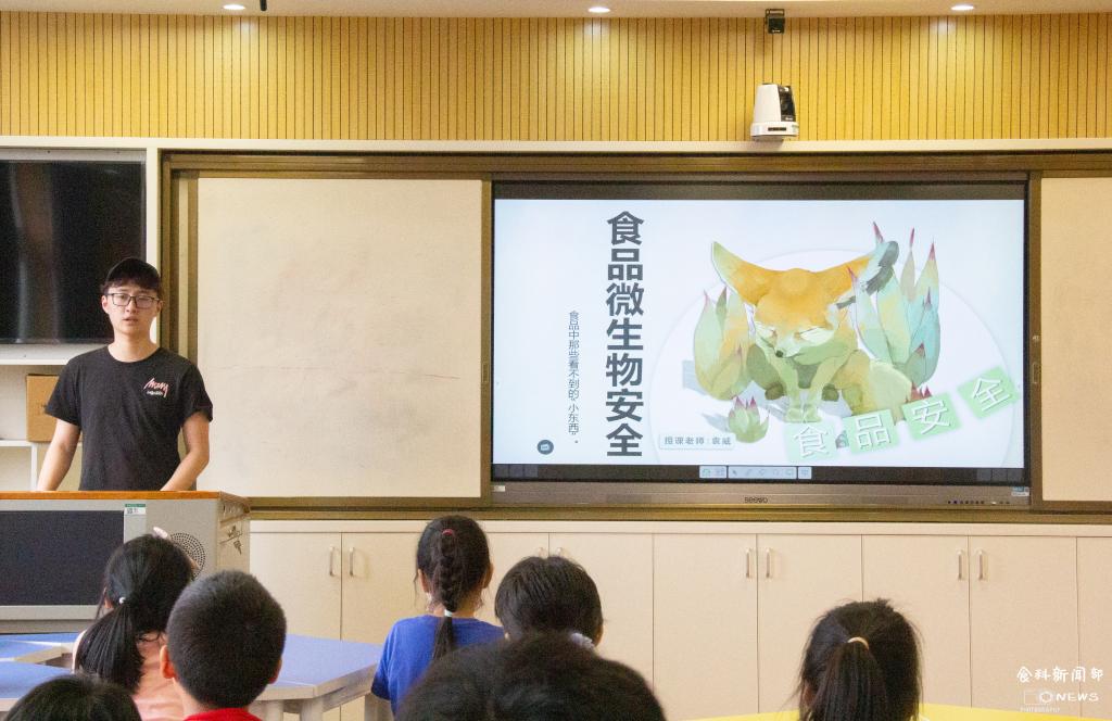 在讲解酸奶有关知识时,袁威共提出六点注意事项,并针对饮用酸奶后要及时漱口和酸奶不适合加热这两点做以详细解释。之后,袁威结合世卫组织的科普视频进行了食品安全五大要点的讲解,并为同学们设计了提问抢答环节,大家都积极参与其中。最后,袁威和同学们一起复习了今天的所讲内容,活动到此结束。