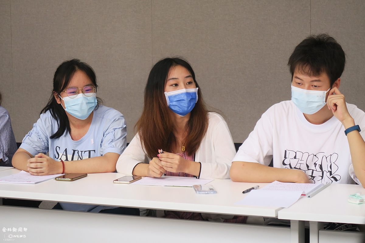 在自我评述环节,戴紫嫣同学讲述了她学习、比赛、生活以及参加员工工作的经历与心得体会。在提及她因爱好摄影参加校园摄影展时,青平要求同学们在做好学习这项基本功的同时,也要培养自身的兴趣爱好,做一个全面发展的人。随后,鄢玲荟、崔兆宇和宋冠辰等人先后分享了他们上一学年的收获,每个人丰富的老员工活也都得到了在场老师的肯定和建议。
