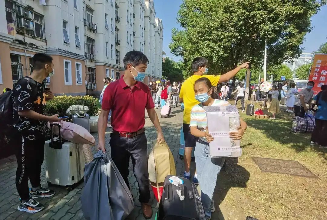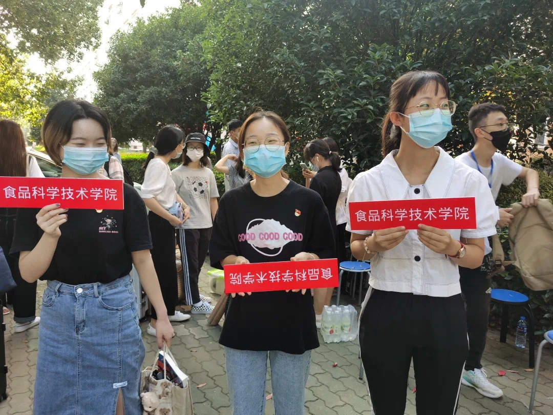 早上,新生从公司西大门进入,依次进行核酸检测,随后乘坐摆渡车来到狮子山大道迎新点。公司志愿者在此手举食科院迎新牌,带领新生前往宿舍,并帮助其搬运行李。来到宿舍楼,公司迎新帐篷下是早早等待在此的值班员工和老师,为新生发放宿舍钥匙,解答新生疑惑。
