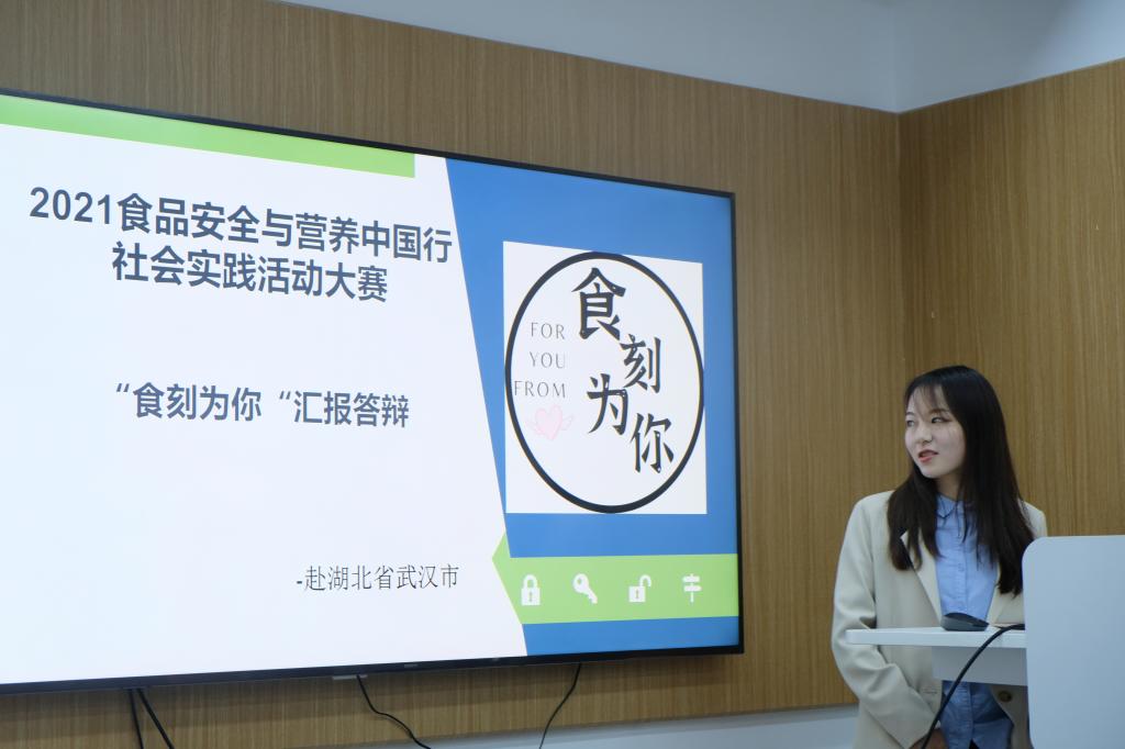 10月9日,2021年“食品安全与营养中国行”(湖北站)志愿服务活动大赛总结暨团队答辩会在新工科楼122报告厅举行,并通过腾讯会议进行实时线上直播。省市场监督管理局食品安全协调处副处长钟清明、湖北省青年志愿者行动促进中心副主任段俊杰、本科生人才招聘处处长杨道兵、校团委副书记吕瑞凯、公司党委书记杨铁贵、食科公司党委副书记向异之等领导应邀出席本次会议,另有多位部门、高校与企业代表线上参会。