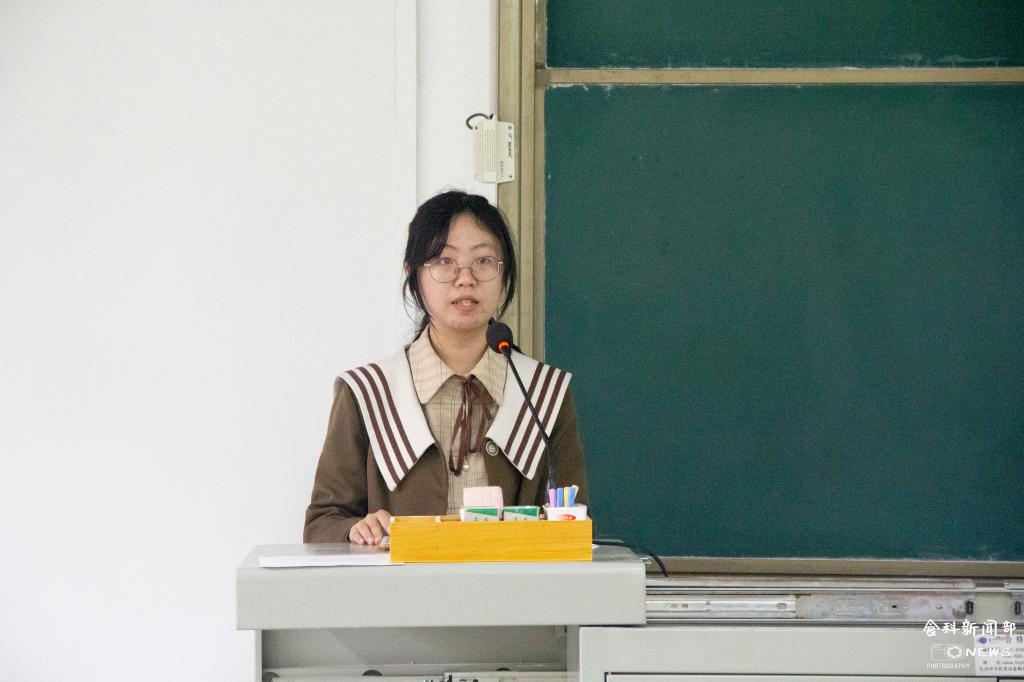 辅导员李子鑫、李虎为上一届优秀会员颁发奖状。食工类2108班方可欣作为代表上台发言,向大家分享她的学习感悟。在谈到“如何让学习不留遗憾”这一问题时,她说道:“我们应明确学习目标,在课题中探索,在合作中学习。注重将理论知识与实践相结合,由此加深对理论知识的理解。”