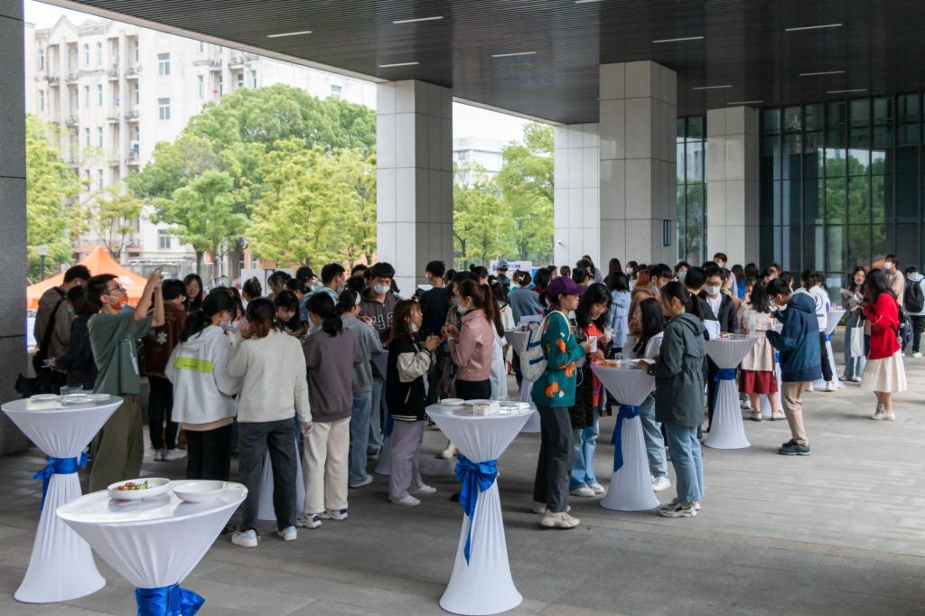 本次食文化节也引入了冰粉DIY活动,以红糖水调味,在剔透滑嫩的冰粉上撒上自己喜欢的花生碎、葡萄干等小料,让同学们在参观、品尝美食的同时,也能体验亲自动手制作美食的乐趣。