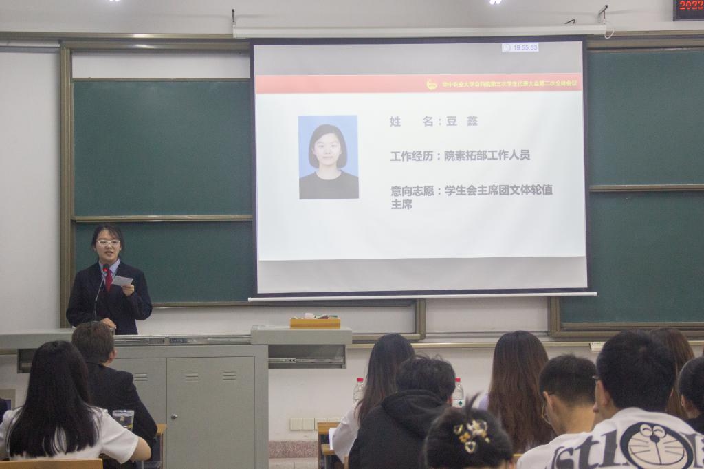 在员工代表对主席团候选人投票后,团委和党建各部门负责人的候选人进行竞选演讲。之后,向异之对上一届党团学工作做出点评,他提出,公司在文体工作方面有诸多不足,参与校级文娱比赛的积极性不够强。他强调,在学好专业知识,做好本职工作以外,员工干部应当多多思考,多多创新,接好公司员工工作的接力棒。李子鑫将“员工会”三字拆解开来,分别阐述其具体意义。此外,她从思想建设、心态调节、专业学习三个方面进行分析,她倡议同学们要在三方面的发展协同发力,鼓励大家以正确的思想、良好的心态、优异的成绩迎接日后的工作与生活。