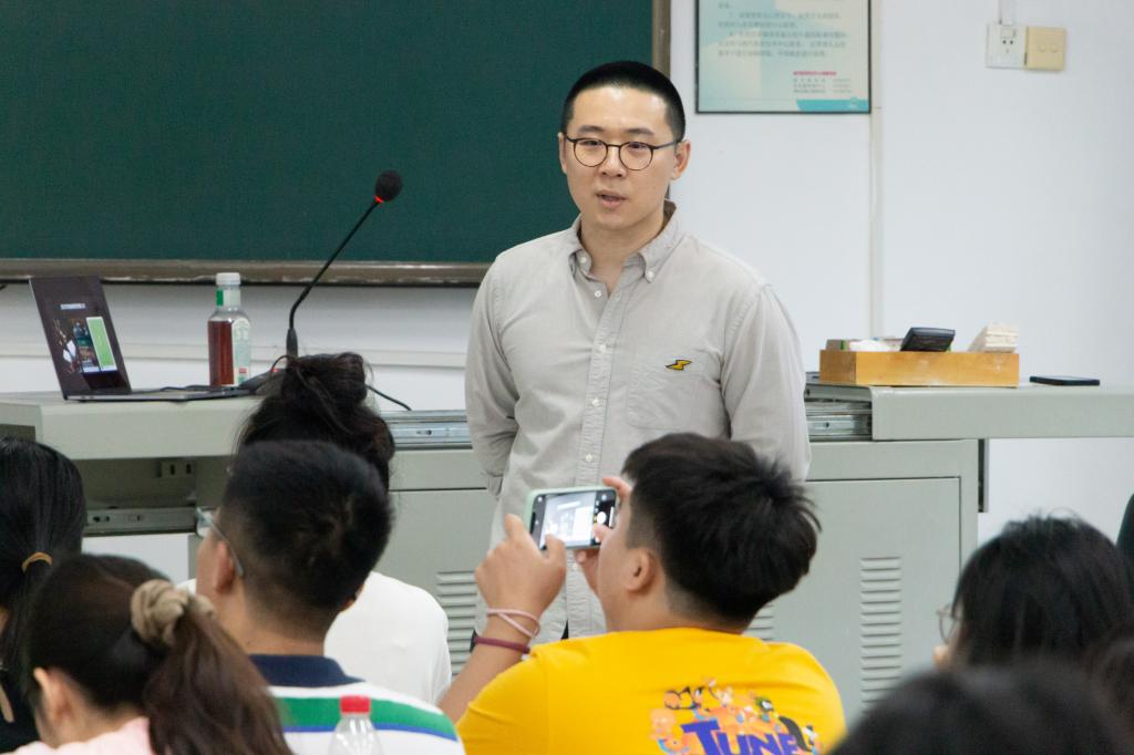 6月15日晚,武汉乔克咖啡商贸有限公司、武汉小霹雳咖啡有限公司、湖北九氪贸易有限公司等公司法定代表人丁哲然应邀在三教C202“饮料工艺学”课上开展主题为“关于精品咖啡,需要了解的几件事”讲座。食工及茶学专业部分员工到场参加。