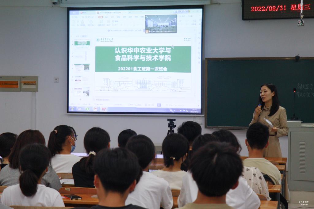 与此同时,食工类2201班在同学们自我介绍结束后,班主任田静为大家介绍了公司学科特色、团队力量以及校园文化。她以三鹿奶粉事件为例,简要讲述了三聚氰胺为什么可以被添加到奶粉中,加深新生对食品安全概念的理解。随后,副经理陈前江总结发言,他提出新生入学应做三件事:第一件事是要认识公司、公司及学科发展情况,了解公司的起源历史、学科特色及人文活动,对大学有一个清晰的认知;第二件事是珍惜过往成果,来路不易,在大学应以更加饱满的热情投入学习中,提升专业能力;第三件事是要对未来生活充满希望,老员工活必定是丰富多彩、热情洋溢的。同时,他希望新生树立“为产业服务”的理想信念,学成之后积极投身到食品产业的建设中去,为产业发展做出贡献。